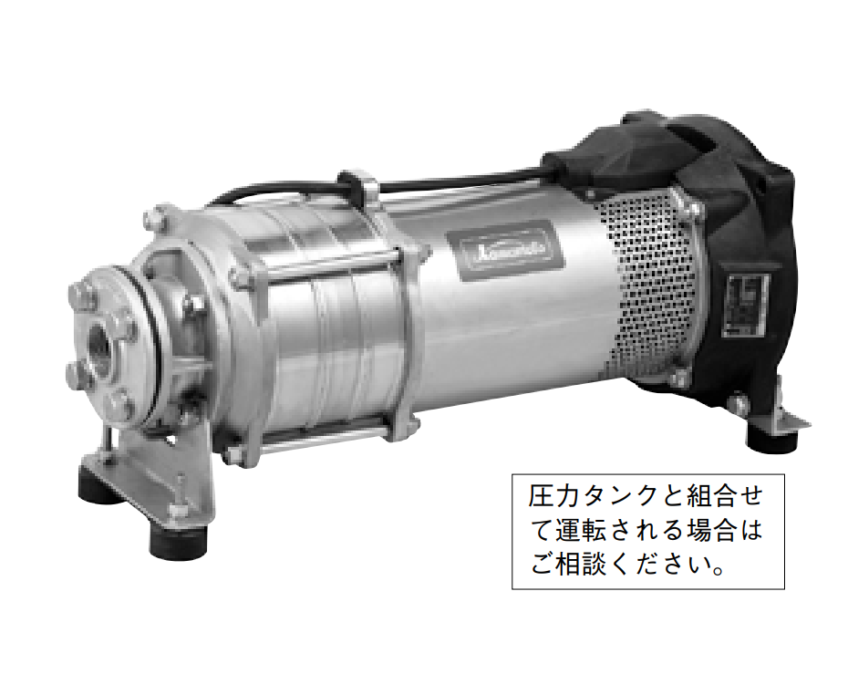 | 發(fā)動機 | 屏蔽潛水電機 三相200V(55kW為400V) 同步 轉速 50Hz:3,000min-1,60Hz:3,600min-1 |