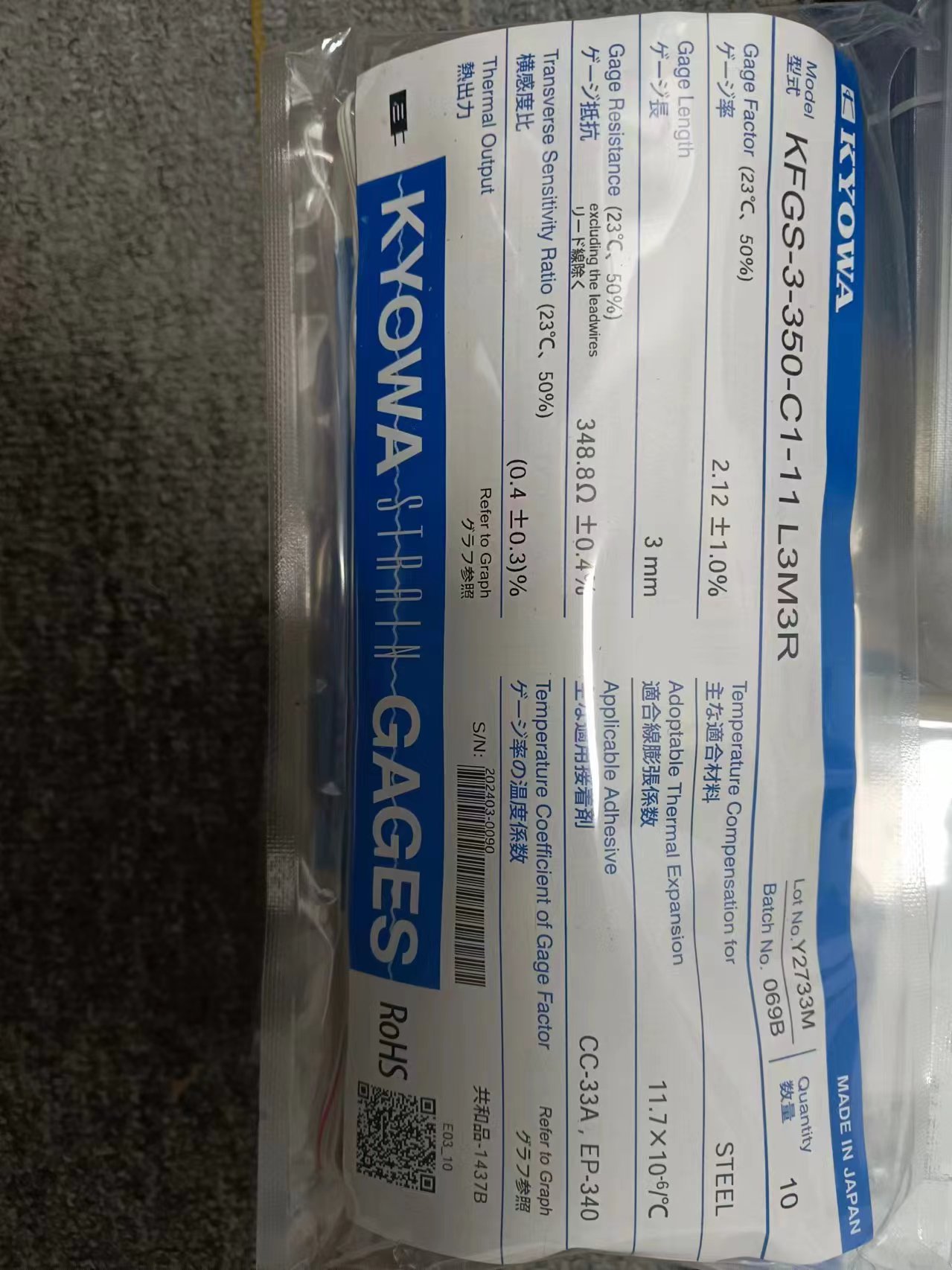 型號名稱 | 應(yīng)變片(敏感柵) | 基底 | 線膨脹系數(shù) |