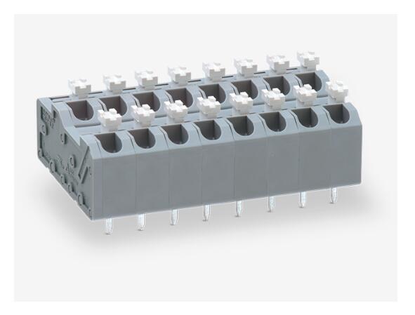 無(wú)螺絲接線(xiàn)端子 節(jié)距 5mm 直角按鈕環(huán) 絞合 單線(xiàn) PCB 安裝 分立式尼龍 UL CSA TUV 94V-0